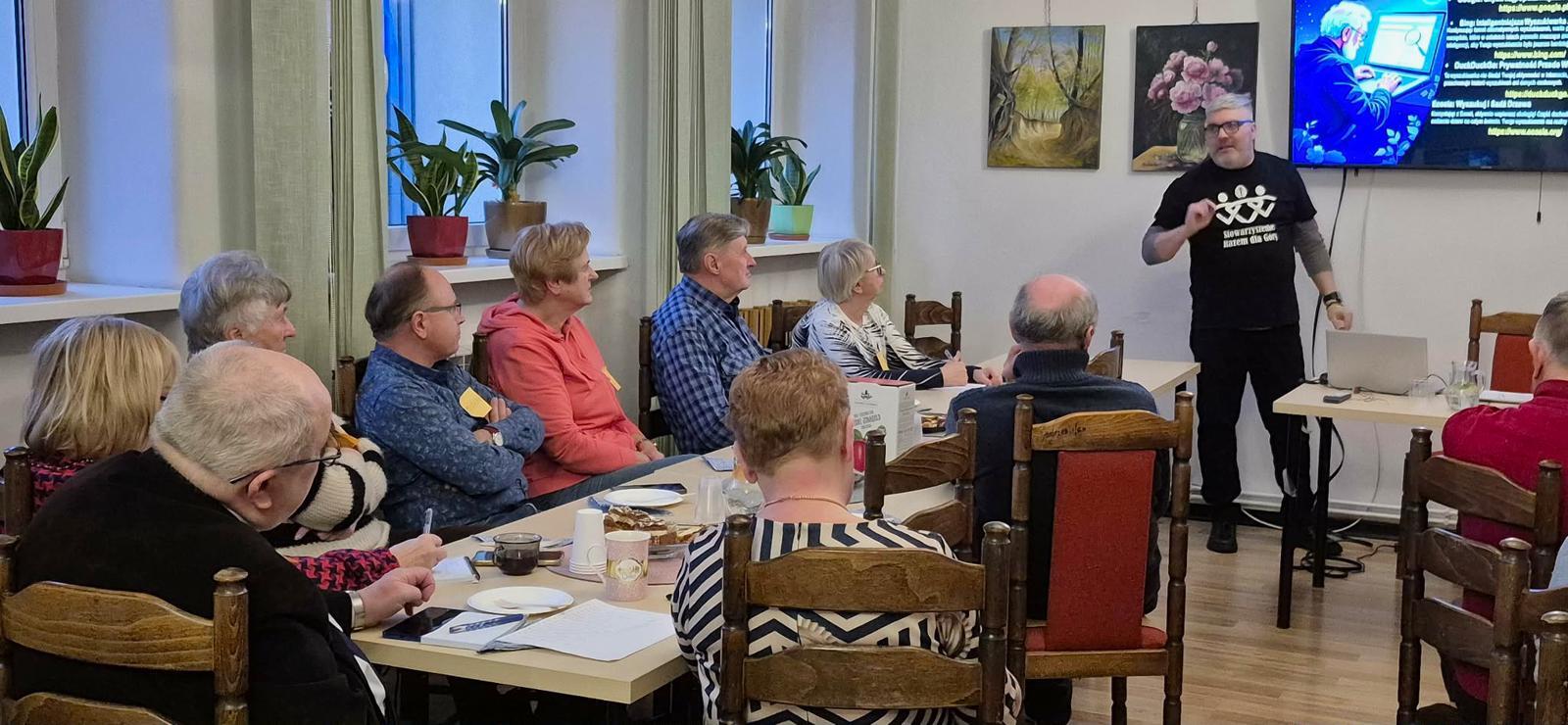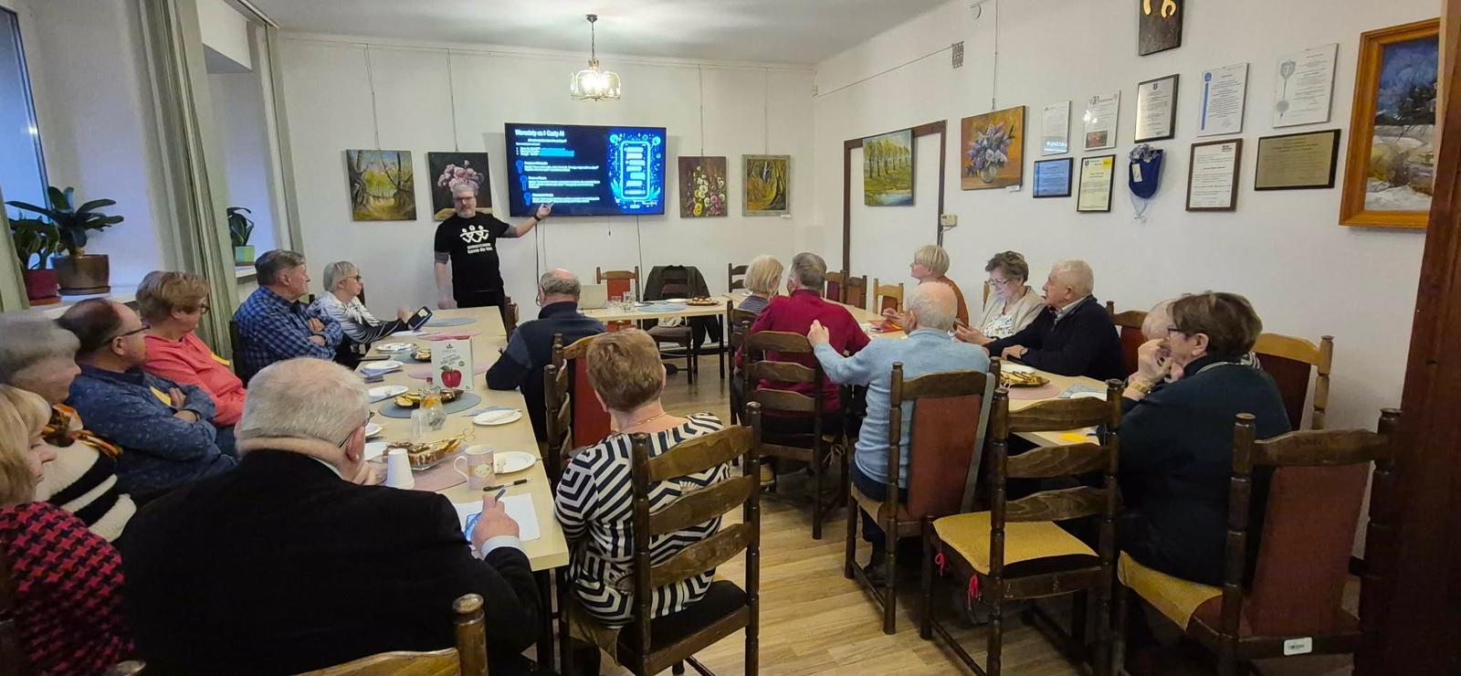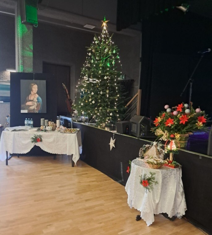 Następnie uczestniczyliśmy w warsztatach dekorowania bombek. Każdy z nas miał za zadanie udekorować cztery bombki. Ileż było przy tym śmiechu i zabawy bo okazało się, że to nie takie proste zadanie🤣. Na zakończenie każdy otrzymał udekorowane przez siebie bombki pięknie zapakowane w kartoniku.